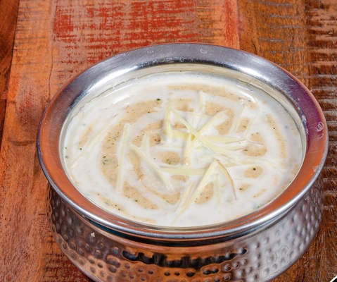 soczyste kawałki mięsa lub ser indyjski przyrządzone z drobinkami orzecha nerkowca i nutką kremowej śmietany, Mięso - 100 g, ser 100 g, dorsz- 100g, krewetki- 6 szt. Dania- 350 g